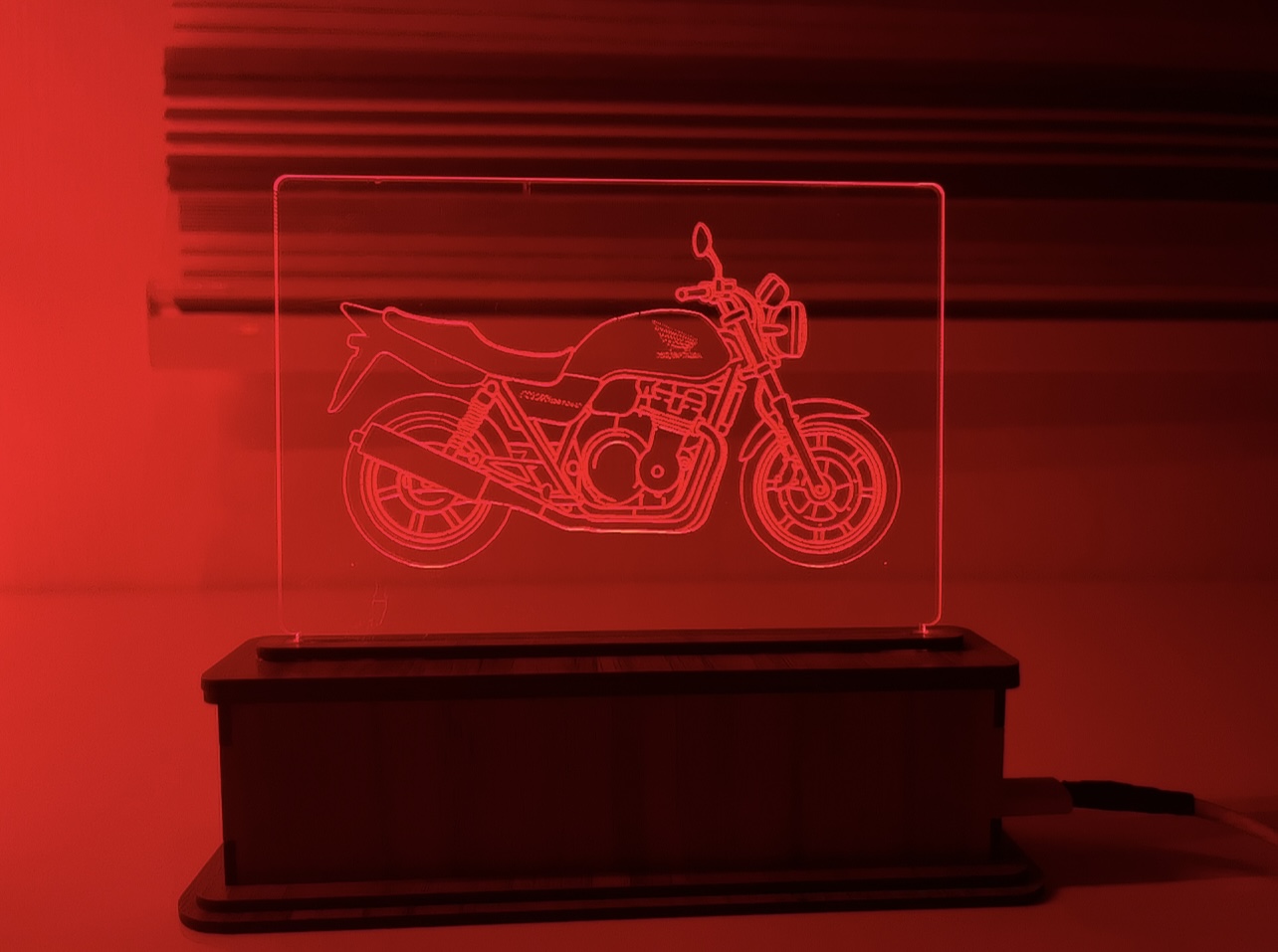 بالبینگ cb1300 یه چراغ خواب خفن با نور ملایم کلاسیک مخصوص عاشقان موتور . ابعاد بدون پایه ۱۵در۱۱ سانت با اتصال کابل تایپ سی روشن میشه و دیگه نیازی به ادابتور نیست